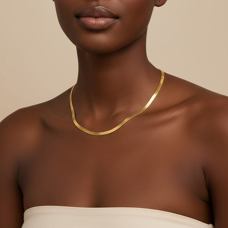 The Serene Chain features a fluid snake-style silhouette designed for women who love elegance with simplicity and flow. Polished and refined, it sits seamlessly against the skin for effortless everyday wear.